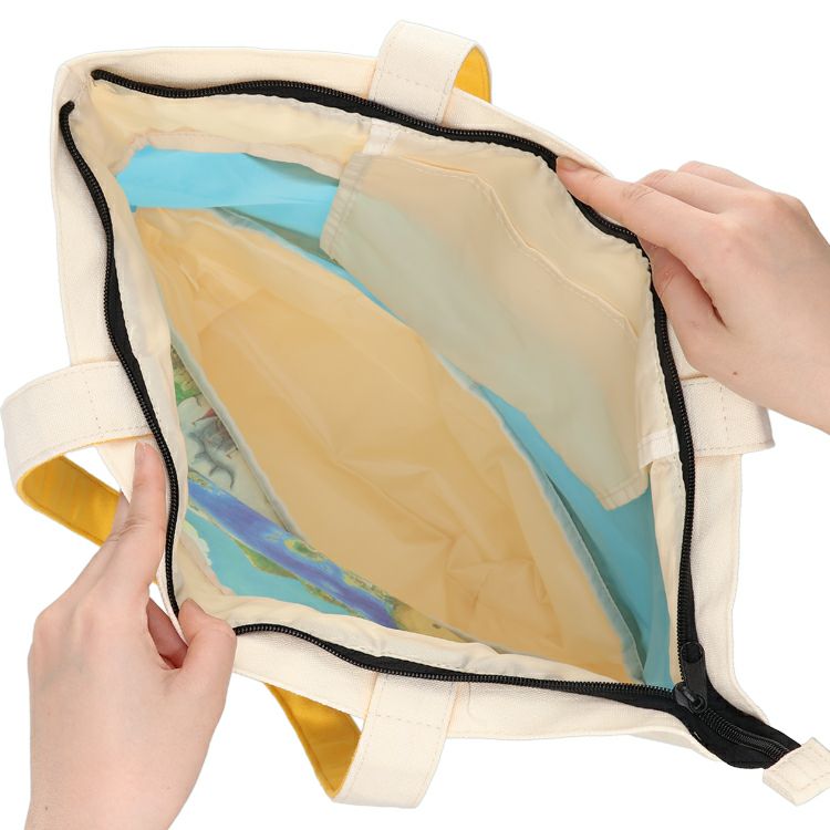 ファスナーを開けると高さが拡張できて、かわいいイラストが登場します。
