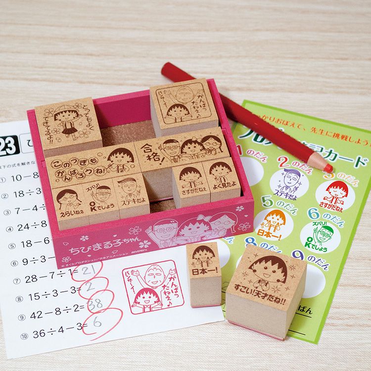 ちびまる子ちゃんの木製ごほうびスタンプセットです。