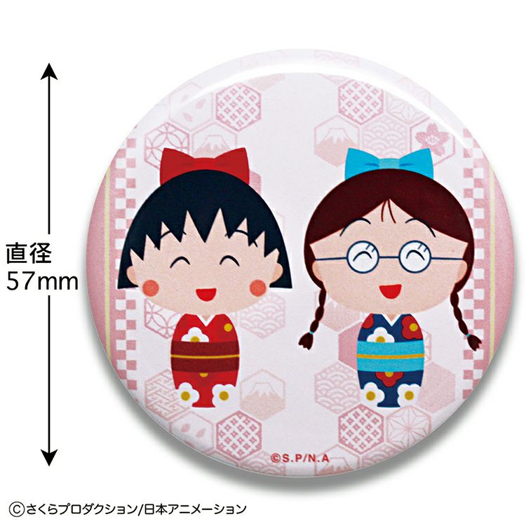 まるちゃんたちがこけし姿になった、ほっこりかわいい缶バッジです。