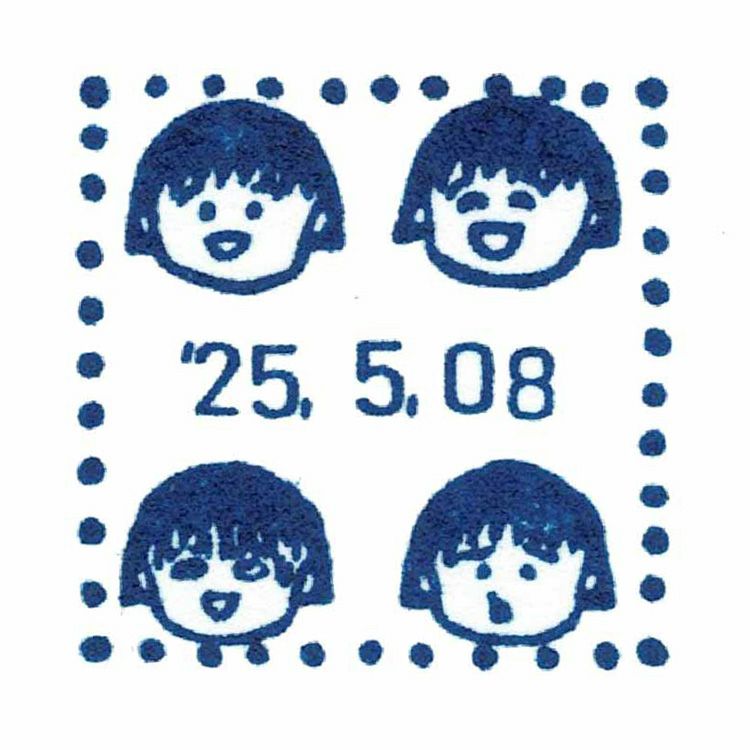 ちびまる子ちゃんのかわいいイラスト入り日付スタンプ。